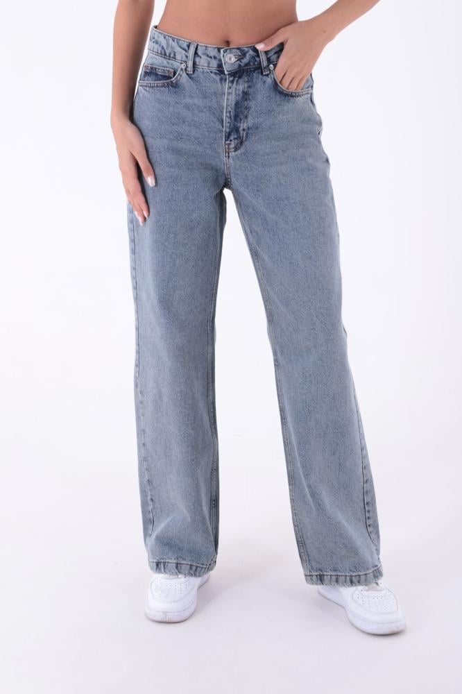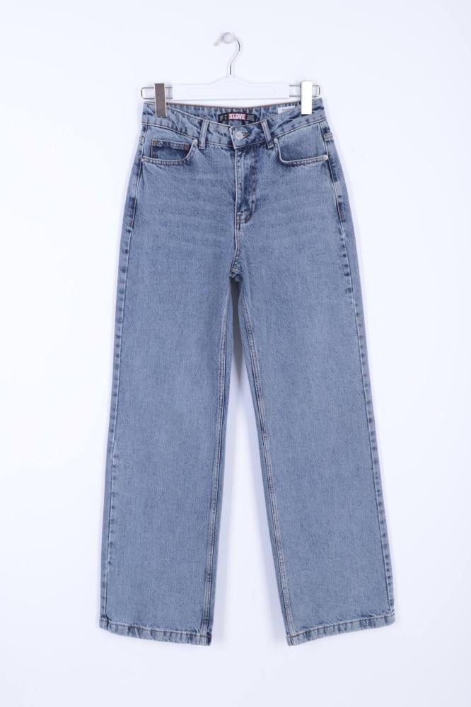 بنطلون جينز قصة شبة واسعة باللون الأزرق